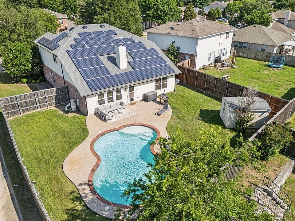 SOLAR PANELS INCLUDED! Incredible value! Former model home on a large corner lot with a pool — and serious added value.