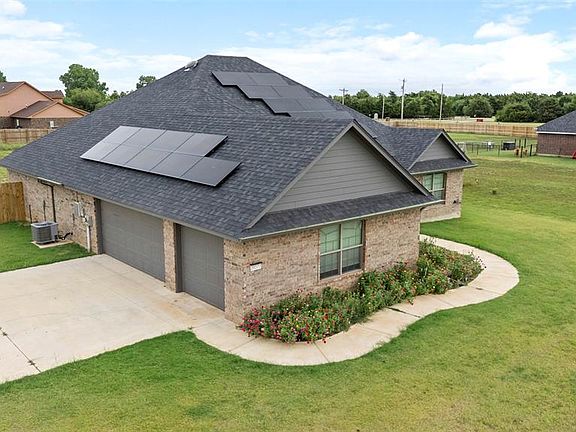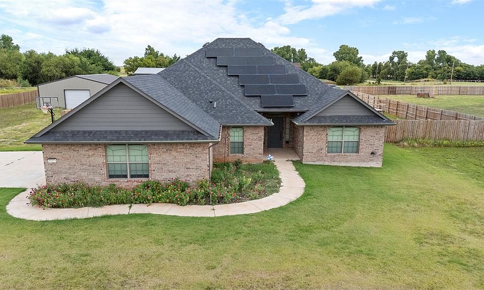 Enjoy the charm of country living without giving up city convenience. Built in 2023, this modern 4-bedroom home sits on a fully fenced acre in Cashion Estates. Offering peace, space, and privacy just a short drive from the metro. Inside, enjoy bright, open concept living, a spacious 3-car garage, and a smart layout featuring two bedrooms with private en-suite bathrooms. Custom cabinets in the BIG beautiful laundry room. Out back, an extended concrete patio is ready for BBQs, fire pits, or quiet evenings under the stars. The 30x40 shop (on slab, with a window) is perfect for hobbies, storage, or your next big idea. This is a short sale, making it a rare opportunity to own a nearly new home with solar panels. This is all electric home.