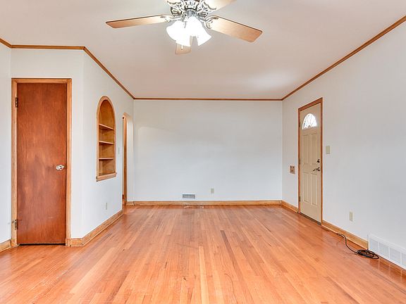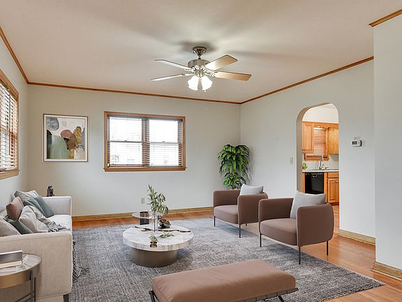 Charming two-bedroom home featuring all-brick exterior and original wood floors throughout. This delightful home has a detached two car garage, ideal for parking and storage, complemented by a large yard and comfortable patio, great for outdoor fun. Inside enjoy the large basement rec room with egress window, versatile space to make your own. Don't miss the opportunity to make this home yours. Majority of the home has been freshly painted. 3 photos are virtually staged.ama