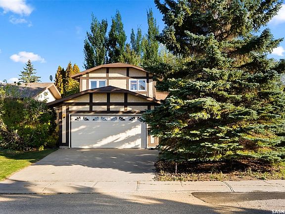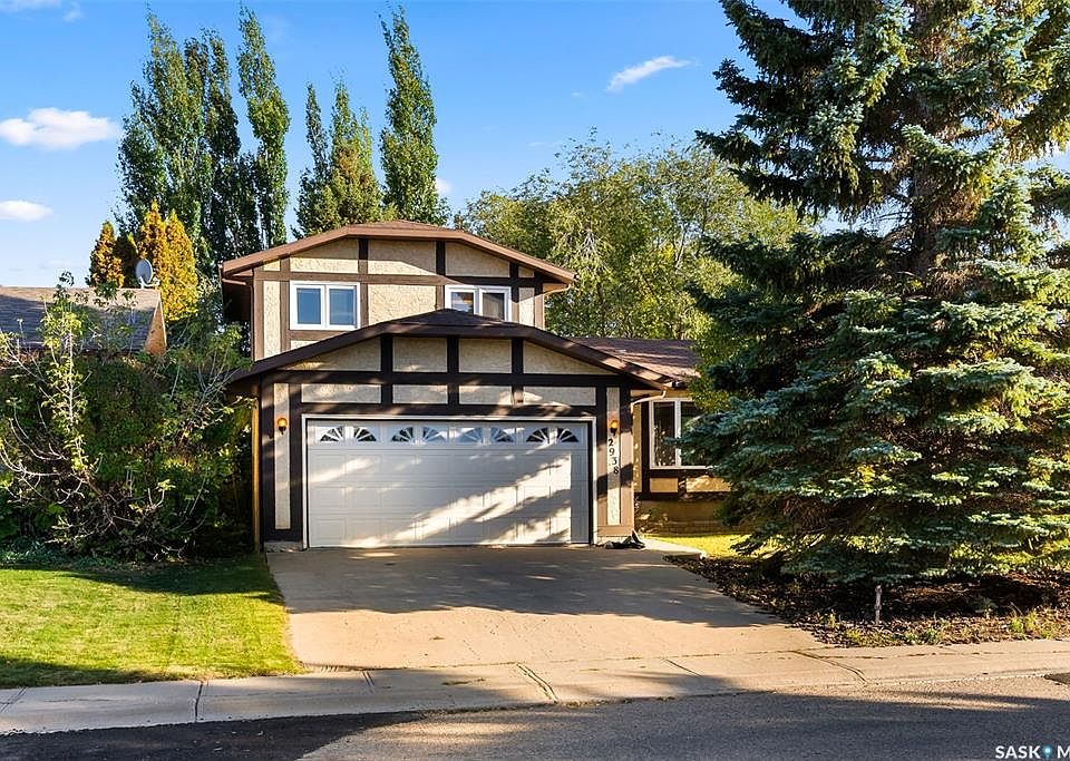Welcome to 2938 Huget Place located in a quiet bay location in Gardiner Heights in the desirable east end. This 1673 sq ft 2 storey split has a Tudor style street appeal with a double attached garage and is nestled among mature trees. Upon entry the foyer leads to the large living room with a huge bay window flooding this area with light and it is open to the formal dining room. Next is the kitchen with stainless steel appliances and room for a casual eat in dining area with a garden door to the sunroom. Next, step down to the sunken family room with a fireplace. On this floor we have a 4th bedroom that could be an office, a bathroom with laundry and direct entry to the garage. Upstairs we have 3 bedrooms, the primary has a 3 piece ensuite and walk in closet and the other 2 bedrooms are a good size. The family bathroom completes this floor. Down to the basement we have a huge rec room with a "stage", a possible second kitchen with a sink, a den and lots of storage areas. Outside the yard is fully fenced and mature with a shed and garden area. Furnace and windows replaced. This is a perfect family home close to schools, parks and all essential amenities.