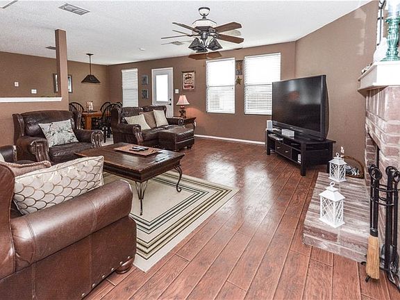 Lovely 2-story home on a huge corner lot! 4 bedrooms, 2.5 baths, 2 living areas. Beautiful wood-like floors in the dining room & family room. The open floorplan features a large family room with a brick wood-burning fireplace & a dine-in kitchen with a ceramic top stove, microwave, unique backsplash, lots of cabinets & a spacious breakfast area. Half bath down. The master suite has a walk-in closet & the bath provides a dual sink vanity, garden tub, shower & walk-in closet. Upstairs is an open gameroom, 3 bedrooms & a bath. Relax on an open patio & enjoy a wonderful backyard with a storage shed enclosed with a board-on-board fence. Extras: chandeliers, ceiling fans, security system, gutters & much more.
