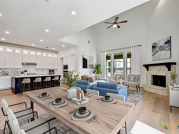 This two-story Highland home sits on a corner homesite with a 2.5-car garage! Abundant design upgrades throughout, including metal railing at the stairwell, custom kitchen cabinets with built-in appliances, a freestanding tub in the primary bath, and wood floors in the living areas downstairs! Enjoy an oversized covered patio with open space directly behind the home. The loft plus media room offers a great upstairs get-away. Two bedrooms downstairs contribute to the livability of this home. A must see!