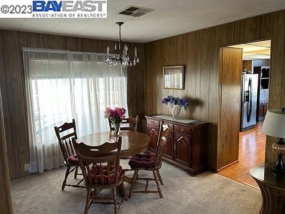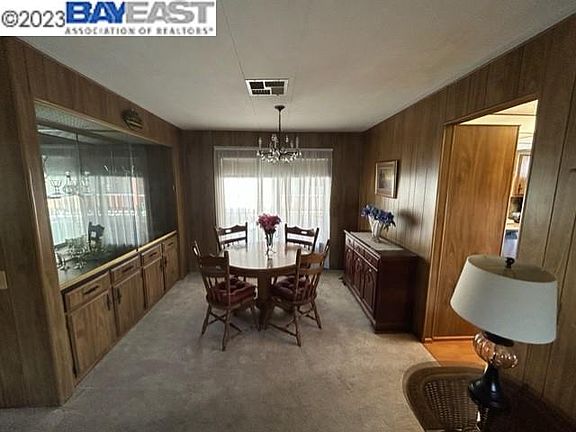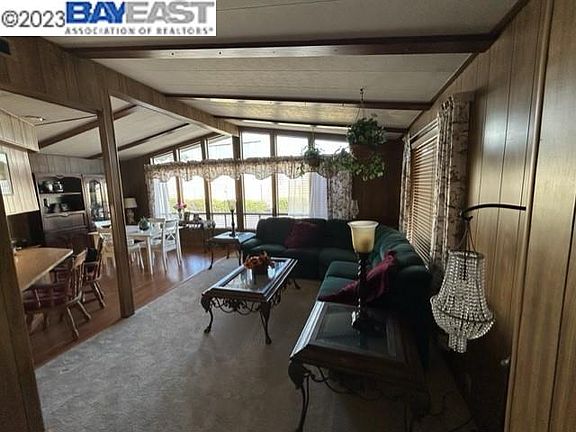 Mobile home in New England Village with: 2 bedrooms; 2 full baths; separate living and family rooms, both with vaulted ceilings; kitchen with nook and stainless steel appliances; dining room with built in hutch; laminae flooring in bedrooms, kitchen & nook; large side porch; home walking distance to RV/Boat storage and visitor parking; desirable adult community with clubhouse, pool, spa & more.