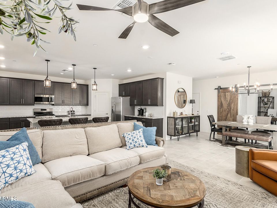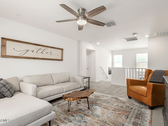 The stylish home of your dreams! This beauty shines with high-end designer touches and a modern open floor plan. The gourmet kitchen features stunning granite counters, SS appliances, 5-burner gas range & spacious walk-in pantry. Enjoy seamless indoor/outdoor living with sliding doors to a private paver courtyard perfect for entertaining! Owner's suite offers a super-shower w/dual heads, granite with double sinks, balcony & generous closet. Den w/barn doors doubles as 4th bed + full bath downstairs, plus a huge loft upstairs for fun gatherings. Energy-efficient upgrades include tankless water heater, water softener & overhead storage. Just steps to heated pool, spa, clubhouse, pickleball, playgrounds & trails! Resort living meets low maintenance living at its best!