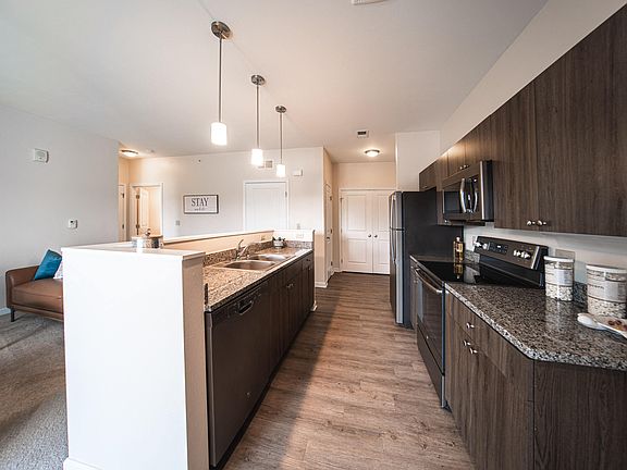 - Exterior features: 10-foot ceilings, 24-hour emergency maintenance, Ample storage, Balcony, Bonfire stations, Built in 2020, GE gray slate appliances, Granite countertops, High-speed Internet Ready, Kayaks, On-Site Maintenance, On-Site Management, Online resident portal/payment system, Panel doors, Pet Park, Pet friendly, Picnic Area, Plush carpeting, Sprinkler System, Sundeck, Thoughtfully designed interiors, Top-of-the-line kitchen with island, View Type: Lake views, View Type: Pond Views, Volleyball Court