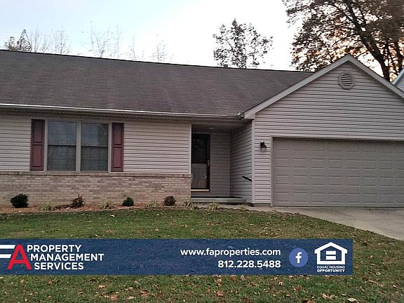 REQUIRES 24 hour notice to view. Available January 1st! Open floor plan and two bedrooms, two baths. This ranch has a spacious Great Room with vaulted ceiling, which is open to the kitchen and dining area. Kitchen, baths, laundry and foyer have tile flooring. The home has a large double closet in foyer and linen closet at end of hallway. The master bedroom has a walk-in closet and master bath. There is an additional bedroom with walk in closet and hall bath with tub/shower combo. There is a large laundry room and 2 car garage. Back yard has wood privacy fence and patio for grilling. The tenant is responsible for all utilities. 12 month lease with matching deposit. Credit, background and rental check required. No smoking. Schools: Oakhill and North. Average Vectren: $226.00. Call 812-228-5488 to schedule an appointment to view 2939 Ivy Meadow Drive!!