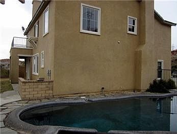 This outstanding two-story West Palmdale pool home is located in a quiet Ana Verde neighborhood and enjoys nearly 2700 square feet of space. Lush landscaping and mountain views provide curb appeal. The living room is made cozy with a fireplace and handsome hardwood flooring that continues in the formal dining area and family room that features another fireplace. The kitchen includes tile counters, built-in appliances, a large pantry and a breakfast bar that opens to the family room. A bonus room would make a great office. Upstairs, the oversized master bedroom becomes a relaxing retreat with a private balcony and spa-like master bath with dual sinks, garden tub and separate shower. Three more sizable bedrooms and another full bath complete the second story. The backyard is ready for sophisticated outdoor entertaining with the covered patio, sparkling blue pool and spa and the peaceful scenery of the rolling hillsides.