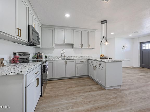 Welcome to this completely rehabbed home offering 3 bedrooms, 2 bathrooms, and approximately 1,500 sqft of living space. This contemporary home is in a prime location directly across from schools & daycare. Every aspect of this property has been meticulously renovated, providing a modern and comfortable living environment. Inside, you'll find fresh paint and new flooring throughout, creating a clean and inviting atmosphere. The kitchen has been fully remodeled with shaker cabinets, complemented by new high-end gold handles and fixtures. The space is perfect for culinary adventures, & it now showcases a brand new stainless steel range and new countertops. Outside, the walls have been resurfaced and painted, giving the property a refreshed look. Brand new pavers enhance the curb appeal.
