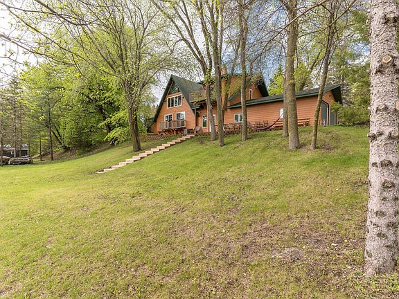 Nestled on the quiet shores of West Lost Lake, this lakefront property with 3 bedrooms, 2 full baths, and over 2 acres, offers plenty of private living and entertaining space. The 190 feet of lakeshore provides breathtaking lake views from the patio and 3 decks. The cathedral ceiling and wall of windows create a bright atmosphere accentuated by the cozy warmth provided by the potbelly wood stove, gas stone fireplace, and newer propane forced air heat. Inside, this gorgeous home boasts custom cabinets, fresh paint, central air, and new flooring, adding functionality and style to the living space. The large master suite offers serene lake views and luxurious amenities in the master bath, including 2 sinks, a jetted tub, and a walk-in shower. The inclusion of smart siding, insulated and heated attached garage, detached garage, and fire pit, further enhance the property's appeal. With the 756-acre lake right at your doorstep, there's no shortage of water recreation activities to enjoy.