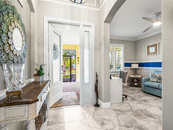 Extensively upgraded 2020 home on a gorgeous lakefront lot, that will take your breath away! All impact glass, porcelain tile, and a whole house generator, too! Plus, added square footage in the rooms that matter, added windows in the dining room to give you more light and additional lake views, custom millwork and trimwork including ceilings to created a coffered effect, plantation shutters. Fantastic gas kitchen with extended island, pull outs/soft close, custom lighting. Extended screened porches, to enhance your outdoor living space. Not in a flood zone! Gated community with very low dues.