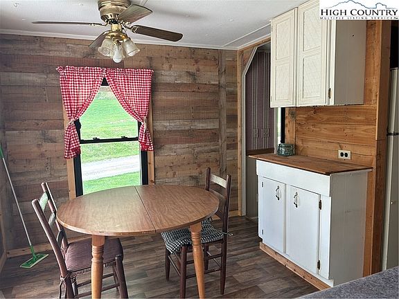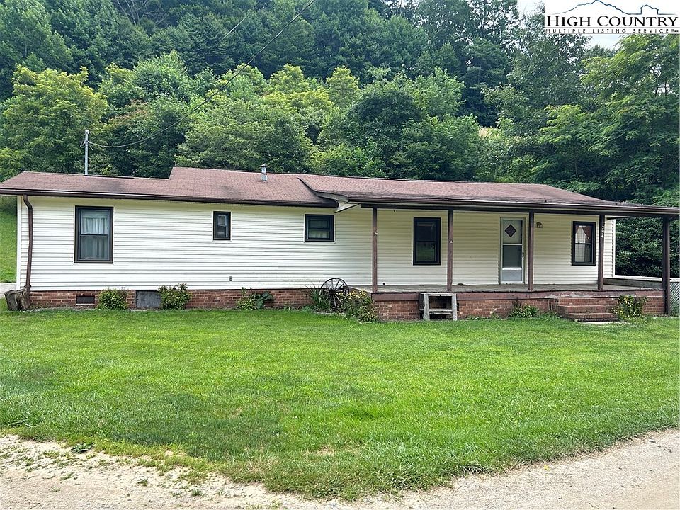 AFFORDABLE MOUNTAIN HOME on 2.88 unrestricted acres. There is 1 bedroom, 2 full baths plus an office. Large covered front porch and a 14 x 14 screened porch on the back. Large storage building/workshop. There is a 30 foot deeded right of way and a shared well. Some furnishings stay. Being sold "AS IS, WHERE IS". " The living room is 13x14, master bedroom is 13x14 along with M bath 8x12 with just under 7 ft ceilings not counted in Sq Ft.