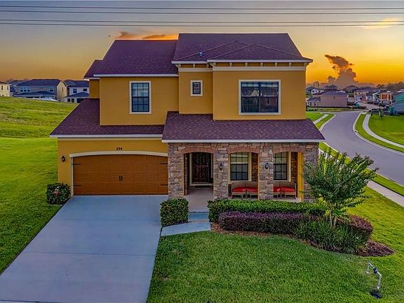 Huge Price Reduction! HUGE LOT, HIGH ON THE HILL,w/sunsets galore,no immediate rear neighbors,huge green space to one side! Only 25 minutes to Universal Studios and downtown Orlando!This model has all the extensions and upgrades,gorgeous colors&materials.Lots of natural light&spacious feel from the moment you walk in.The bonus room downstairs, has a set of French doors and can be a formal dining/living room, a perfect office/den as well! The huge great room has bamboo flooring,huge wall for the largest of TVs or entertainment centers,plus opens the the gourmet kitchen - entertaining is a breeze.Tons of upgraded quartz counters throughout including the massive island w/sink. The abundance of 42" cabinetry/massive walk in pantry means you have more storage space than imagined!Double ovens, an upgraded cooktop&refrigerator, all stainless steel.Casual dining space has beautiful views out the windows to the private screened porches,as well as the rolling hillside to the north.Off the great room is a spacious bonus room with another set of sliding glass doors out to the lanai, also w/incredible views.This room would make a perfect home office,second den,formal living room or even go further and transform it into a master suite w/modifications.Another full bath/bedroom downstairs.The loft upstairs is currently being used as a home theater, many other possibilities!Master suite is huge, master bathroom is fully upgraded&has huge closet.PRIVATE screened lanai w/HOT TUB.WOW, the breezes!Please see video then visit!