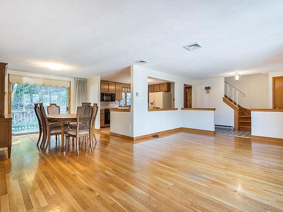 Desirable location. Close to transportation. Sun filled eat in kitchen with tile floor. Open floor plan leads to spacious living room with dining room area. Slider off dining room leads to deck for ease of entertaining. Hardwood floors throughout along with natural woodwork. Oak staircase brings you to 3 good size bedrooms all with ample closet space and hardwood floors.Full well cared for bath. Finished basement complete with wet bar and half bath. Has it's own egress great for an in law. New windows throughout central air conditioning as well. Driveways on each side of the house for ease with parking.