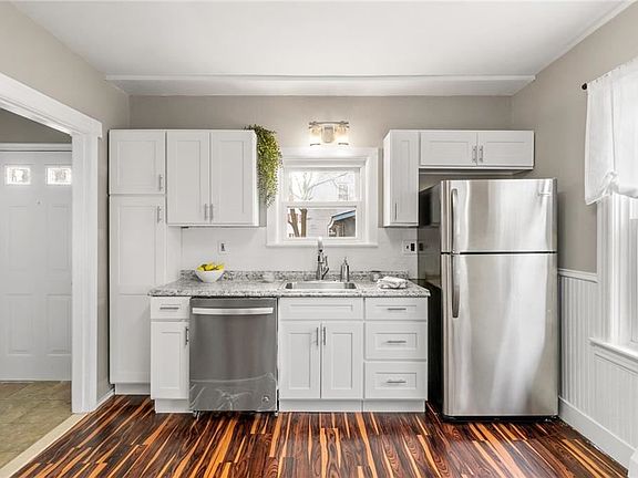 Come see this beautifully updated home! Newly painted and hardwoods throughout. Cute, private yard. New vinyl siding. Newly updated kitchen and bathrooms. 3 good size bedrooms and a bonus small 4th bedroom/office/ playroom. Comes with 1 year home warranty.
