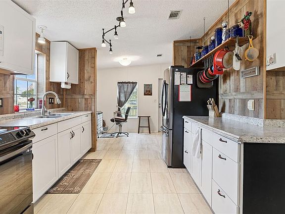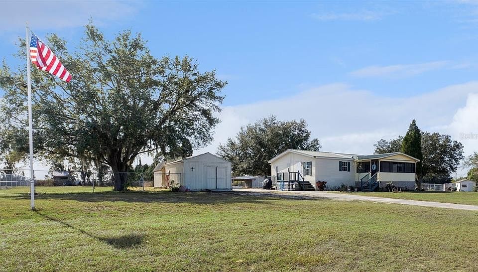 This is the rare property that stops buyers in their tracks: a beautifully maintained 3 bedroom, 2 bath home set on more than an acre of high and dry land with updates that matter. The home delivers the ideal combination of location, usable space, and a floor plan designed for everyday comfort. From the upgraded kitchen to the split layout and oversized primary suite with ensuite bath and walk-in closet, this home checks every box. Laminate flooring throughout, no carpet, a brand new AC, and a metal roof approximately nine years old add value and peace of mind. The expansive land offers new fencing, a workshop, shed, chicken coop, and abundant room for an RV, boat, or future additions. The cozy front porch sets the tone for a property that is move-in ready, private, and versatile, all with no HOA or CDD.