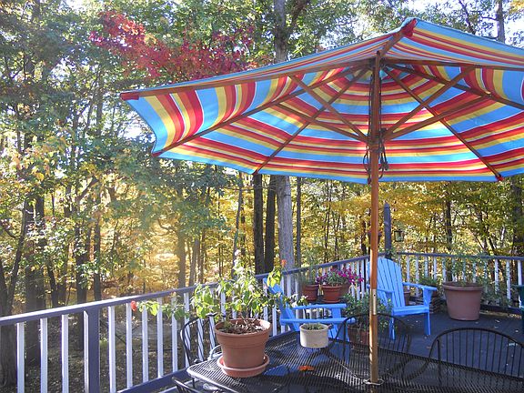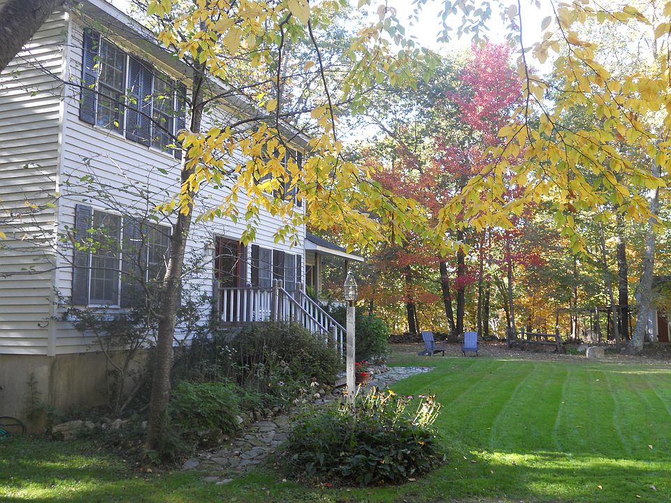 Lovely Colonial in a beautiful private setting. Front Porch, large back deck, sunfilled rooms, huge eat in kitchen, Family Room with fireplace and french doors, powder room, hardwood floors throughout, Living Room, Formal Dining Room, Master bedroom with bath, 2 additional bedrooms with bath, large walkout basement with workshop. Property is set well back from the road and is surrounded by protected land in back and fronts Fahnestock Park, stonewalls and a small pond. Just minutes to the village