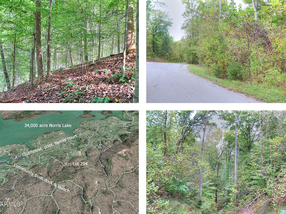 Lot 294 Garfield Ln: This 1.63 acre wooded building site has rolling hills & fairly level building spots & is located approx 1/2 from the community center that offers clubhouse with fitness center, pool, tennis courts, boat launch, helipad for emergencies, & twin covered marinas. Sunset Bay, a Norris Lake waterfront community, has light restrictions for your protection & offers public water, sewer, and underground electric. The lot is located at the corner of Garfield Ln and Volunteer Ln (Volunteer Ln is a private Rd in need of extensive repairs but there's 193 feet of road frontage on Garfield that offers easy access to the property.). The easiest place to enter the lot is on Volunteer Ln at the sign.