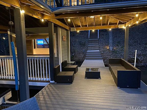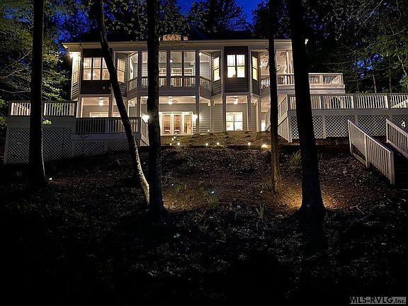 Experience lakeside luxury in this beautifully custom-built freshly udated home, perfectly positioned in a deep-water protected cove just off the main lake. Step inside to discover gleaming hardwood floors throughout the main level, complemented by a cozy fireplace, extensive decorative moldings, impresive 9' solid core doors adding elegance to every room. Enjoy panoramic views from large windows thoughtfully placed throughout the house, filing each space with natural light and stunning scenery. The gourmet kitchen is a chef's dream, boasting custom cabinetry, granite, countertops, work island, and two distinct dining areas-one featuring elegant board & batten detailing for added character and style. The lakeside master suite offers serene water views, private access to outdoor spaces, and a luxurious ensuite bath. Upstairs, a large finished bonus room above the oversize two-car garage provides flexible for guests or recreation,The lower level is designed for relaxsation and fun, featuring two spacious bedroom suites one with its own ensuite bath, a lakeside recreation room, a second fireplce, and custom wet bar. Step out onto the stone patio or unwind in the delux multi-person hot tub, all just steps from the water. Enjoy hours of lakeside activities from two screened porches or 2 large custom deck areas, perfect for large gatherings. Double boathouse w/bar area makes lake living effortless. Subdivision offers a gated entrance, paved roads, private boat ramp, and a fenced parking area for watercraft trailers and recreational gear. Current owners also use VRBO short-term rentals for investment purposes, ask for details. Indoor/Outdoor home furnishings, pontoon boat negotiable outside closing. 20 minutes to I-85 prvides easy access to Raleigh, NC, and Richmond, VA.