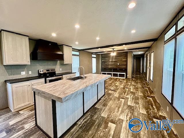 Beautiful 2022 Farm House Style 16x76 Clayton Home on +\- 0.56 Acres!! Home has 3 Bedrooms and 2 Full Baths and no Carpet!! Open Floor Plan, Walk in to the Living Room with Accent Wall, Built In's, Recess Lighting and Wood Beams, Eat In Kitchen with Island with Farm House Sink and Stainless Steel Appliances, Hall with Accent Wall, Isolated Primary Bedroom with Accent Wall, Recess Lighting Walk In Closet, Primary Bathroom with Soaking Tub, Separate Shower Double Vanity, Accent Walls and Recess Lighting, Bedroom 2 and 3 with Recess Lights and Full Hall Bathroom with Accent Wall!!
