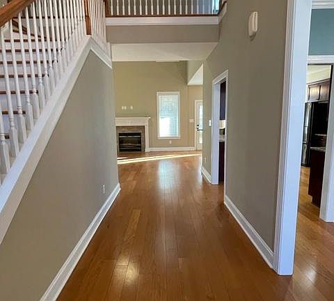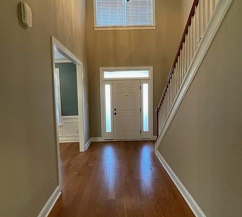 Excellent in Canturbury Farms. Move-in Ready. 4 bedroom with 3 full baths, stone pillar decor on front with arching porch design. Wide foyer with Oak Colonial Wood Flooring. Granite counter tops in kitchen and bathrooms w/ cherry cabinets, Guest bedroom downstairs, Open great room with adjoining breakfast area, separate dining room with chair molding, new carpet and custom paint throughout. Brush bronzed fixtures. Oversized master bedroom with garden tub and separate shower. walk-in closet. Neighborhood amenities include pool, walking trails, street lights and sidewalks. Close to nearby shopping, dining and entertainment.