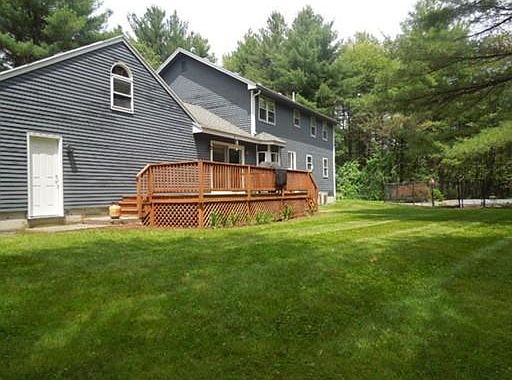 Stonewalls and majestic trees embrace this well loved Colonial on 6+ acres at the Carlisle line! Wonderful property with inground gunite pool and lots of cleared yard/garden areas. Bring the kids! Bring the dogs!! This 4 bedroom, 2.5 bath traditional colonial offers large rooms, hardwood flooring, and cathedral ceiling'd family room with dramatic floor to ceiling brick fireplace with pellet stove insert. French doors lead from the living room to a 11'x16 screen porch with high ceilings and ceiling fan. While summer evenings away on the screen porch or take a swim in the pool. The 9th room is an office off the living room. High end ductless A/C system on the 1st floor cools the house well. Well has water treatment system for iron. Full basement.