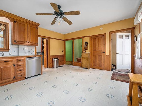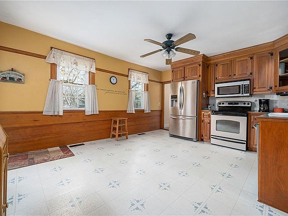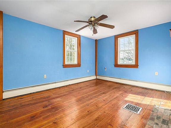 Best deal in Smithfield!! Great sized 3-5 bed colonial with all kinds of antique character and 2 full baths! Over 2,400 sq ft of living space. Formal sitting room and dining room in the front of the house. Or use one as a first floor office. Bonus family room with sliders to the deck on the back side of the house. Eat in kitchen with stainless appliances. First floor laundry room. Great enclosed porch off the laundry room. Three good sized bedrooms on the second floor with a second room off the primary bedroom that could be used as another guest room or a massive walk-in closet!! There are stairs to the attic with ample dry storage space up there! The lower level is unfinished but also can store plenty of stuff. Connected to town sewers. Home has a well with a filter system. The property has over an acre of wonderful land --with a second driveway leading to a flat grassy area and abutting your own stream/pond --- even with its very own busy beaver out there! There is a detached two car garage with a bonus storage area or workshop. Perfect home for someone needing a home workshop/garages!! Previously configured 2 family home & still zoned 2 family! 2 service connections and 2 heating systems. Super easy 2 minute highway access to Rte 7 and 295! Walking distance to enjoy Stillwater Cove.