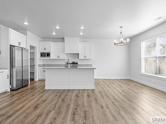 Welcome to this nearly new two-story townhome in Sugar City! Thoughtfully designed with modern finishes throughout, this home offers style, comfort, and functionality. The main floor features a bright open-concept layout with a spacious living room, dining area, and a stylish kitchen complete with stainless steel appliances and large island. A convenient half bathroom, under-stair storage, and access to the attached garage add extra ease to everyday living. Upstairs, you'll find a cozy second family room—perfect for movie nights or a play area—along with a generous primary suite that boasts a walk-in closet, en suite bathroom with a custom tile shower, and a relaxing soaker tub. Two additional bedrooms, a full bathroom, and a laundry room round out the second floor. Ceiling fans throughout and tasteful finishes make this home feel fresh and move-in ready. Come see why this townhome is the perfect place to call home!