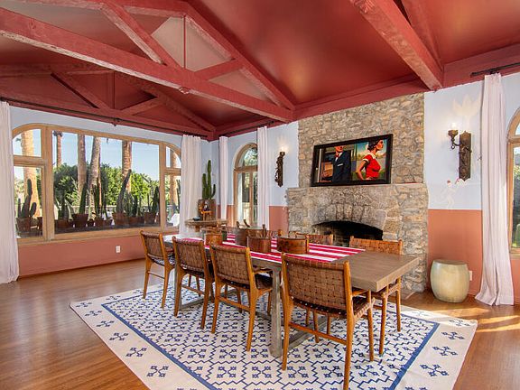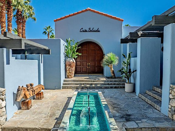 Perched on a private 1.51-acre parcel in The Mesa, the legendary Bono Estate stands as one of Palm Springs' most iconic and storied residences. Once home to Sonny and Mary Bono, the property reflects the vibrant spirit of a transformative era in music, politics, and design where Hollywood glamour meets the desert. Encompassing 8,989 square feet of refined architectural living space, the estate captures the essence of grand Palm Springs entertaining. Clean lines and walls of glass frame breathtaking mountain vistas and bathe the interiors in natural light. The main living areas flow effortlessly into one another, from the expansive great room to a formal dining area with a signature rock fireplace and a chef's kitchen with a Sub Zero Fridge, 8 burner wolf cooktop, two wine fridges, and 4 Thermador ovens that is designed for both intimate gatherings and large-scale hosting.The residence offers 7 bedrooms and 6.5 bathrooms, including a luxurious primary suite and several private guest accommodations each designed to balance elegance with comfort. Throughout, architectural details honor the era's design while blending seamlessly with thoughtful enhancements.Outdoors, the property unfolds like a private resort with a new pergola and extended patio featuring curated landscaping that have transformed the grounds into a showcase with lush lawns, multiple olive trees along with date palms, and cacti that surround the home, creating both privacy and beauty. Multiple terraces invite relaxation and privacy, overlooking the new travertine pool deck, pool, and refurbished tennis (& pickle ball) court that anchors the estate's recreational offerings, making it ideal for gatherings and events beneath the desert sky. Featuring 2 Street entrances, an oversized motor court for 12+ cars, and fully private grounds. A rare fusion of celebrity heritage, architectural distinction, and timeless sophistication, the Bono Estate represents a chapter in the story of Palm Springs.Main Entrance is on 301 W El Camino