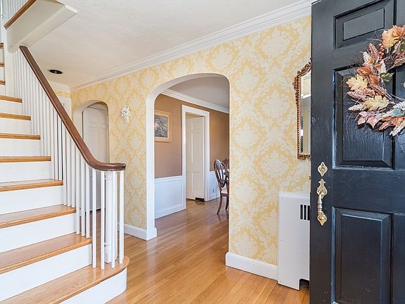 Come fall in love with this perfectly charming Colonial, steps to Hardy Elementary School. Beautiful details include arched entryways, handsome moldings, polished hardwoods, inglenooks and wide windows. The welcoming foyer leads to a well-proportioned living room with wood burning fireplace and a lovely dining room that features wainscotted walls. There is an ideal office - perfect for working from home. A bright and sunny eat-in kitchen with garage access completes the first level. The second floor has three generous bedrooms and a roomy bath with double vanity. The finished lower-level area offers great casual family space. Enjoy a terrific, level and private yard that has plenty of room for gardening and play. Convenient to Route 9, Morses' Pond, Fells Market, and conservation trails. Move right in and enjoy!