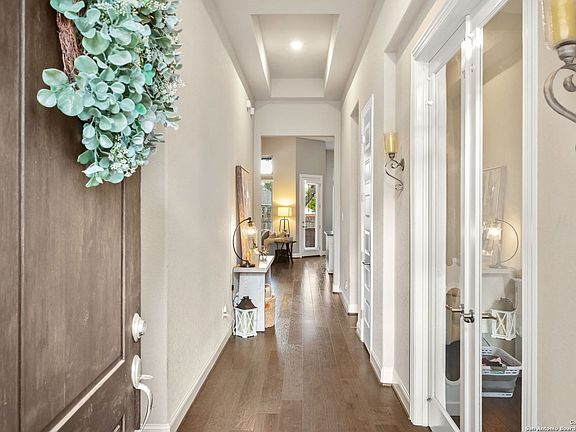 ***OPEN HOUSE, SATURDAY, NOV 8TH 11am - 2p*** Discover your dream home in this stunning move-in-ready home that perfectly combines modern style with everyday comfort. This one story beauty features great curb appeal, open layout with natural light throughout, tall ceilings and a private study with French doors. The living room is a true highlight, showcasing a modern accent wall, custom shelving unit, and a cozy stone gas fireplace. Gorgeous white kitchen features a grand island, gas stove, glass tile backsplash, stainless steel appliances, pull-out drawers and connects to your spacious dining room ideal for endless entertainment! The primary suite is private, complete with a garden tub, dual vanities, and a large closet with a built-in make-ready mirror. Enjoy relaxing evenings on your covered cozy patio with ambient lighting. Located just minutes from IH-10, Hwy. 46, Boerne High School, parks, shopping, and dining options, this home offers both convenience and comfort. Don't miss this opportunity, schedule your showing today and see everything this amazing home has to offer!