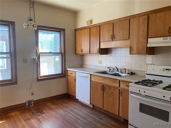 This South Buffalo 3 bedroom 1 bath home is ready for a new owner. Beautiful woodwork & hardwood flooring throughout most of the home. Large living room beaming with natural light features fireplace & french doors that lead to formal dining room. Eat-in kitchen. Relax in heated sunroom. Two 1st floor bedrooms. Original elegant wooden staircase takes you to large 2nd floor bedroom, open area and walk-in unfinished attic which could easily be converted to a home gym, office, etc. Full basement. 1 1/2 car detached garage provides lots of storage. Private yard. Concrete driveway. Conveniently located near shops, restaurants & parks. SF taken from tax records, includes unfinished walk-in attic space on 2nd floor. Welcome Home!