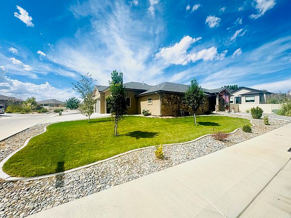 Bring Your Offer! Built in 2020, this stunning ranch-style home offers a side-load 3-car garage and versatile floor plan with 4 bedrooms—or 3 plus a dedicated office. Enjoy low-maintenance living with a xeriscaped backyard, RV parking, and a beautifully stamped covered patio perfect for entertaining. Energy-efficient construction includes R44 insulation in the ceiling and R22 in the walls, helping to keep monthly bills lower. The kitchen is a chef’s delight, featuring stainless steel appliances (all included), a farmhouse sink, double oven, and pantry. The spacious living area is accented by exposed wood beams, adding a modern and inviting touch. Don’t miss this one—schedule your personal showing today!