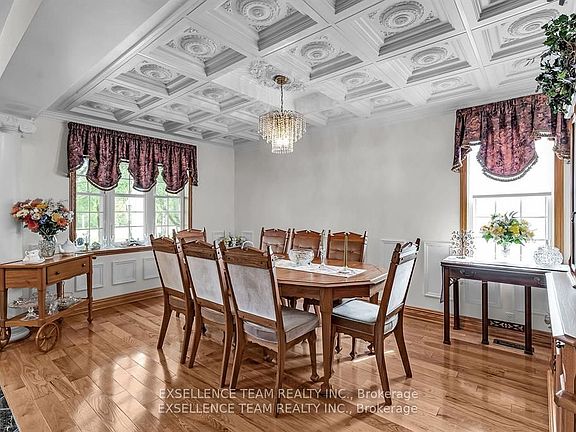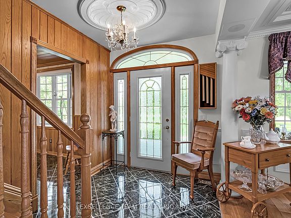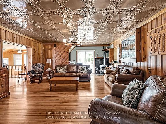 This 34 acres custom home can only be described as elegant. From the Gorgeous Family Room that features distinctive ceilings imported from Belgium and 3 inch Hickory Flooring. Patio doors that lead out to a covered porch, that flows into a beautiful landscaped backyard accented with a Gazebo and Stone waterfall. Great for family gatherings, or weddings. The Gourmet kitchen boasting beautiful granite counter tops, lots of cupboard and stainless steel appliances. Formal Dinning room that features distinctive ceilings that were imported from Italy. This home features 4 bedroom, 4 bathroom. Master Bedroom has ensuite bathroom and walkout balcony. Lower level features a kitchen, bathroom and laundry room that could be used as an in-law suite or office space. Newly refurbished Barn all set up for horses complete with 4 box stall, corral, pasture, hay field, storage space. A wood area complete with trails for nature walks, hunting or 4 wheeling. No power no problem with 10,000 Watt Generac. Flooring: Vinyl, Hardwood, Ceramic.