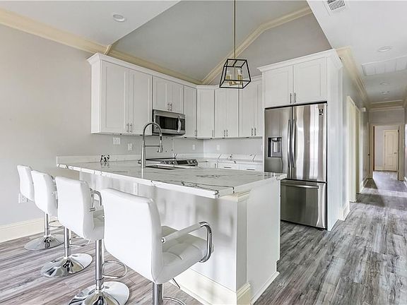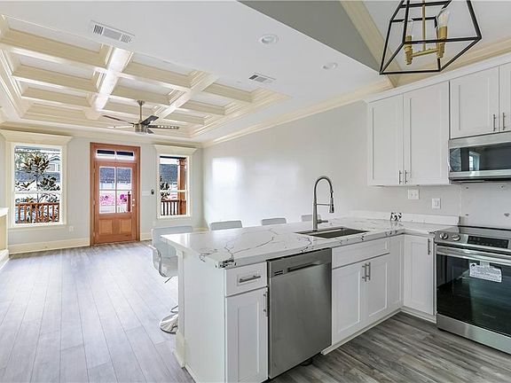 Built in 2021, this Carrollton/Earhart corridor standout pairs modern construction with thoughtful design. Behind the gated off-street parking, an easy, light-filled layout offers three separate bedrooms and two full baths. Wood laminate floors, custom built-ins, and ornate tray ceilings add quiet character, while a chef’s kitchen—with quartz countertops, stainless appliances, custom cabinetry, a large pantry, and a full interior laundry center—keeps daily living streamlined.