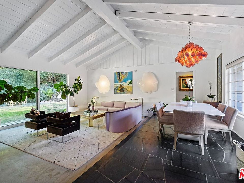 Set off the main road on a lane shared by only 2 other homes, this private gated single story 3 BR,2.5 Bath residence features great mid-century touches and tasteful recent updates. Situated on 1.04 acres, the property delivers tremendous indoor/outdoor entertainment opportunities and large grass covered lawns. Upon entering the home you are greeted by tall vaulted ceilings, walls of glass, a two- sided fireplace and open concept living spaces. The master bedroom offers captivating views from the window seat, a beautifully updated bath area, and walk-in closet. The light-filled second bedroom enjoys a sophisticated new bath area and overlooks the rear yard area and stone steps to a private hillside respite. The third bedroom has been converted to a sunny retreat with glass walls that open to the inviting pool area. This enchanting property offers the perfect combination-a serene getaway yet just minutes to Brentwood Village, the Country Mart and the best of Southern California living.
