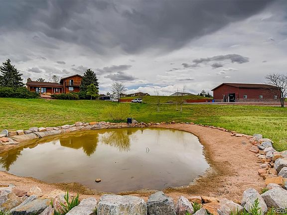 Your Mountain Log Home in the City with a Million Dollar View of the Front Range! This Rustic Log & Stone home has it all-Including access to a 4700 Ft Concrete Runway at Erie Airport. 4344 Sq Ft two Story Home and a 36' X 60' Log & Stone Sided Outbuilding with heat, 220 Electric, and a 14'X14' Overhead Door, and 2 10'X10' Doors. The home sits on 2.69 Acres and offers three stone fireplaces (Great Room, Kitchen, and Master + Wood Stove in Garage) Newer solid hickory wood flooring throughout with 4 bedrooms, 3 Baths, 3 Car attached garage, New Stainless Kitchen Appliances and solid granite counters enhance the Country Kitchen and Breakfast Nook. The Main Floor has a separate area that could be an Inlaw Suite with a separate entrance, Bedroom, Full Bath and living room (Currently has the washer & Dryer) 3 of the bedrooms have Mountain Views & Uppers have a Large Balcony. Master has a private balcony. The Great Room is vaulted with a beautiful stone fireplace and 9' Patio Door to the covered Patio and Hot tub. Solar panels are owned! All Appliances STAY. Tons of concrete for RV/Boat parking and Vehicles.
