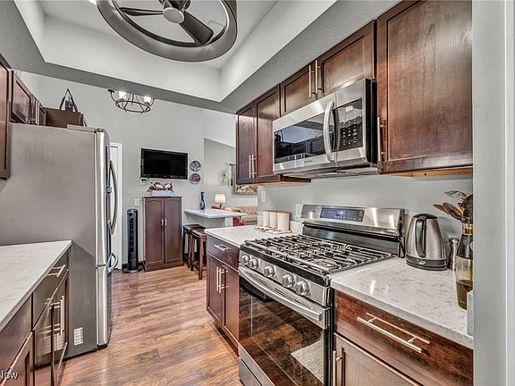 Step into this beautifully updated 2-bedroom, 2-bath condo offering vaulted ceilings, a skylight, and an open layout filled with natural light. The kitchen features stainless steel appliances, quartz countertops, and a breakfast bar—perfect for everyday living or entertaining.