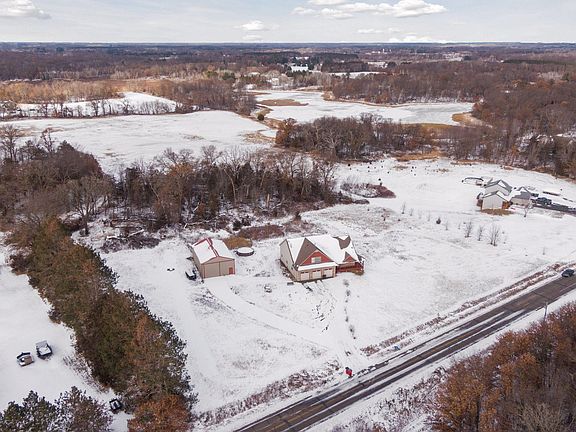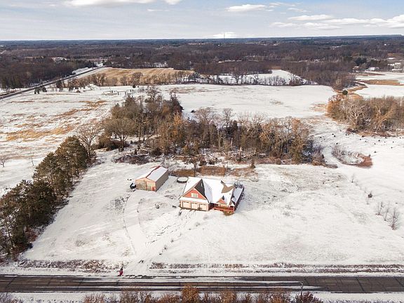 So much acreage and close to the lake! This custom-built home sits on 4.7 acres with plenty of both yard and woods. Upper level Master Suite w/private bath has a spa-like jetted soaker tub, tile shower and double sided fireplace. The second level has two large beds, full bathroom, and a custom office space. Lower level features two additional bedrooms, including a suite w/walk-in closet and full bath. Beautiful kitchen with Cambria quartz kitchen counters and center island, custom light fixtures, tile and hardwood floors. Solid interior doors for added privacy & quiet. High efficiency water heater. Heated garage has an extra deep stall offering additional parking, hoist, and 400 Amp electric. The beautiful wrap around deck offers amazing views of the woods, fenced vineyard and the lake.