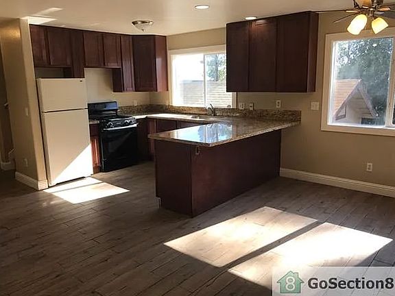 Welcome to 2941 68th Avenue, a spacious 5-bedroom, 3-bath back unit tucked away in a private gated lot in Oakland. This two-story home features an open-concept layout with wood-style tile flooring, granite kitchen countertops, rich dark cabinetry, and a central island perfect for meal prep or entertaining. Natural light pours in through large windows, brightening the living and dining areas. Each bedroom offers ample space with clean finishes and updated paint. The bathrooms are finished with modern vanities, tile floors, and updated fixtures. Enjoy the fully fenced backyard with concrete patio space and mature trees ideal for relaxing outdoors. The unit also includes in-home laundry hookups and shared gated parking. Section 8 is welcome. Conveniently located near transit, freeway access, and local schools. Clean, move-in ready, and built for comfort apply now before it's gone.