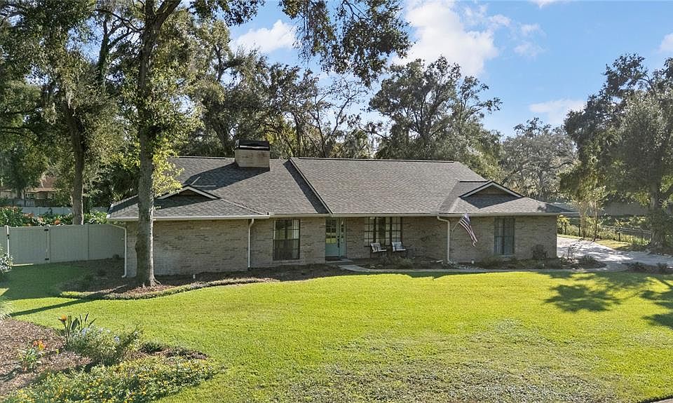 Nestled on nearly an acre, this 4-bedroom, 3-bath home blends timeless charm with modern comfort and a sparkling saltwater pool. An assumable VA loan at 2.375% adds exceptional value for qualified buyers. The open living area features vaulted ceilings, a brick fireplace with custom built-ins, and a 12-foot triple-door slider that opens to a large covered lanai extending to the screened pool area—ideal for relaxing or entertaining. The kitchen offers new quartzite countertops, a tile backsplash, stainless appliances, and a propane gas stove. An adjoining bar area with skylights adds extra space for gatherings. The primary suite provides a private retreat with a renovated bath, double vanity, walk-in shower, and custom tile, plus a closet with adjustable wood shelving and a sliding barn door. Recent updates include luxury vinyl plank flooring, updated lighting and ceiling fans, a 2023 roof with hurricane clips, an energy-efficient front door (2024), and upgraded attic insulation. The fully fenced yard offers privacy and space to enjoy the outdoors, with mature trees, irrigation, a storage shed, and a two-car side-entry garage with a second refrigerator/freezer. Private well and septic (pumped 2022). Zoned for Durant High School and conveniently located near Strawberry Crest’s IB program and other school choice options. Don’t miss this rare opportunity to own in one of the area’s most desirable neighborhoods. Schedule your private showing today!