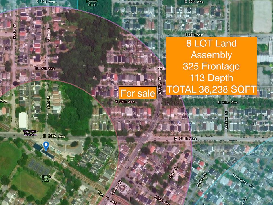 Builder's development DREAM LOTS - 36233 sf area, 8 lots, Land Assembly for Transit Oriented Area (TOA). 12 storey high-rise development, FSR 4.0. 200 to 400 meters of SkyTrain Tier 2 area. Very Quiet Neighbourhood on East 28th Ave. with mountains and water view (after built). Must be sold with 2983, 2965, 2961, 2955, 2953, 2951, 2941, 2937 E. 28th Ave. What are you waiting for?