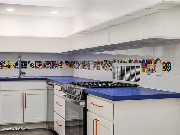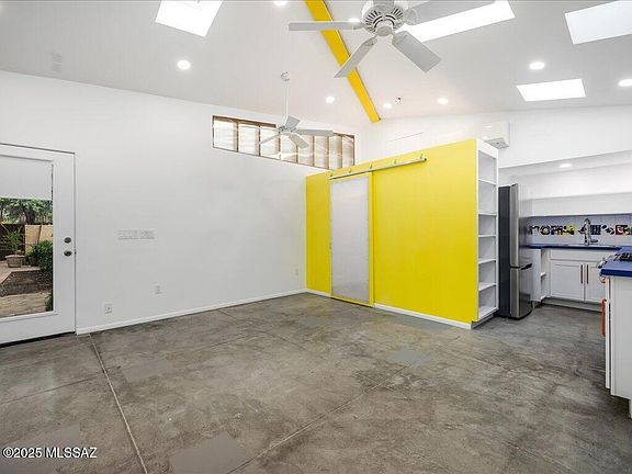Flooded with natural light from multiple skylights, this newly rebuilt contemporary home offers a sophisticated blend of style and comfort. High ceilings and an open floor plan create an airy, gallery-like ambiance, enhanced by polished concrete floors and striking artistic accents. Every detail is brand new--from the sleek modern kitchen to the impeccable finishes. The property is privately enclosed by a security wall with gated entry and designer landscaping. Ideally situated in the historic Sam Hughes neighborhood, near the university, shops, and bus lines--yet tucked away in a quiet, sought-after area--this home delivers luxury, convenience, and peace of mind.