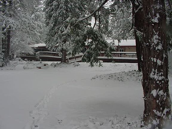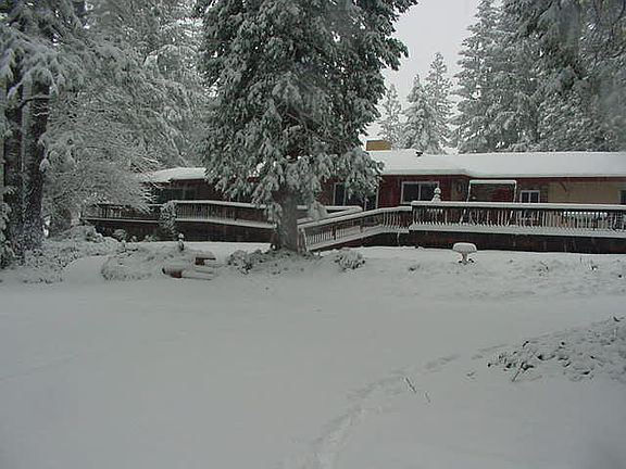 Custom home from 1959 that was updated in 2008. Large bedrooms, living room and family room. Large kitchen with breakfast nook, brick oven built into the 2nd of 3 fireplaces and large duel pane windows with panoramic views of front area and forest. Enclosed breezeway (laundry room) with laundry hook ups and pantry with access to the garage, front and back of the home. 2 car Garage with large tool room. Two car carport cover outside garage to expand parking and vehicle protection. Sprinkler system throughout the property. Entire property is Fenced with a smaller fenced backyard area with back patio, a outdoor brick fire place with stone cooking top, landscaped rock walls and steps, brick walkways, and garden area. Large deck that wraps around 3/4 of the home with 3 gates, 2 ramps and two large open areas, one in the front of the home and the other in the back accessed through the living room or master bedroom sliding glass door. Handicap access to all entry doors. 3 fireplaces and forced air heater.