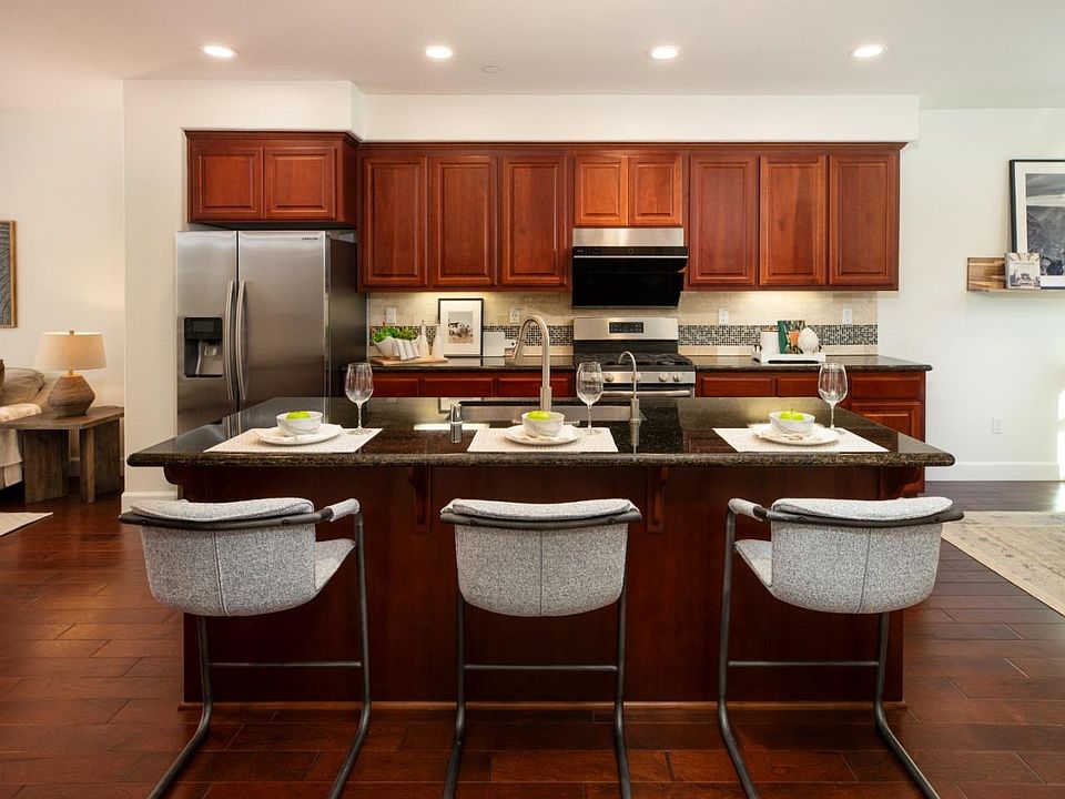Do not miss your opportunity to see this stunning 10-year-new townhome in the heart of Silicon Valley! This gorgeous home offers three generously sized en-suite bedrooms, including one on the first floor - perfect for guests, family, or a home office. The open-concept dining, kitchen, and living areas flow seamlessly, creating an inviting space for both daily living and entertaining. For added convenience, the laundry is located upstairs, right near the primary bedroom, making everyday chores a breeze. Outside, the community offers abundant amenities, including a BBQ area, pool, spa, and a redwood-lined trail that brings outdoor enjoyment and relaxation. Its prime location provides easy access to NVIDIA, Apple, and many other top tech companies, as well as parks, authentic restaurants, grocery stores, and excellent private schools. Tucked away in the very center of a quiet, peaceful community, this home offers the perfect blend of tranquility and accessibility.