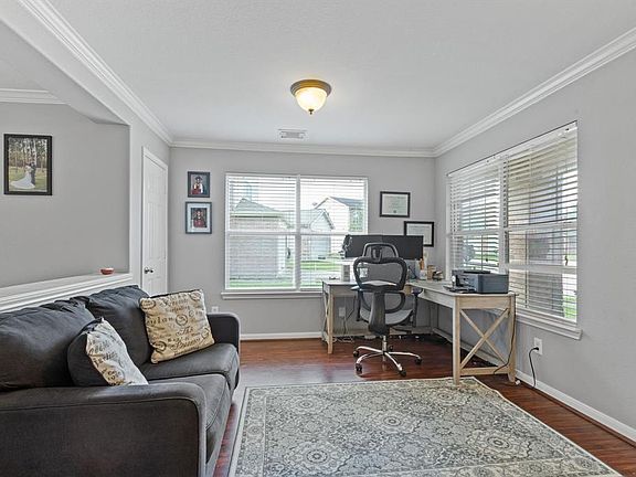 Dedicated home office near entry. Upstairs primary suite with dual vanities, garden tub, separate shower, and walk-in closet plus a flexible game room and well placed secondary bedrooms. Fully fenced backyard on a cul-de-sac lot. Minutes to TX-99, schools, parks, community pool, hospitals, gyms, groceries, and golf about 20 minutes away.
