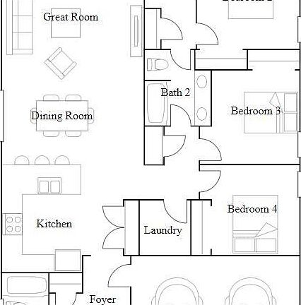 This single-story home features ample space for growing families. Four bedrooms are lined up in a neat row, including the owner's suite, while an additional bedroom near the entry offers an ideal space for overnight guests. An open floorplan hosts the kitchen, dining room and Great Room with a spacious covered patio attached.