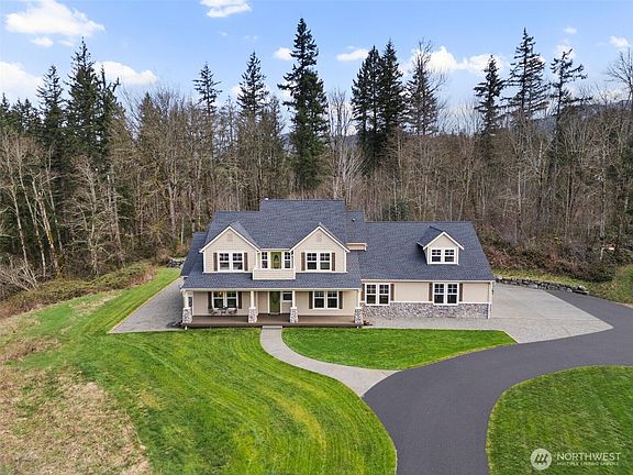 Welcome to your 20-acre Enumclaw retreat—an outdoor enthusiast’s dream! Behind private gates, enjoy a fully paved drive, acres of manicured private trails for walking, biking, ATVs, and abundant wildlife including elk and bald eagles. The custom 4 bed, 3.75 bath home offers 3,850 sq ft of refined living with soaring ceilings, a spacious bonus room, and a main floor primary suite featuring dual walk-in closets and a luxurious ensuite. A secondary bedroom also features a private bath—perfect for guests. Bring all your toys to the 24x36 heated shop with 3 roll-up doors and 1/2 bath. The 4-car attached garage, automatic generator, and pristine natural surroundings complete this rare property. Privacy, adventure, and comfort—this one has it all!