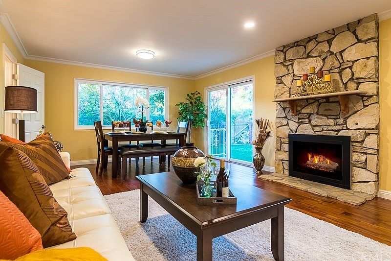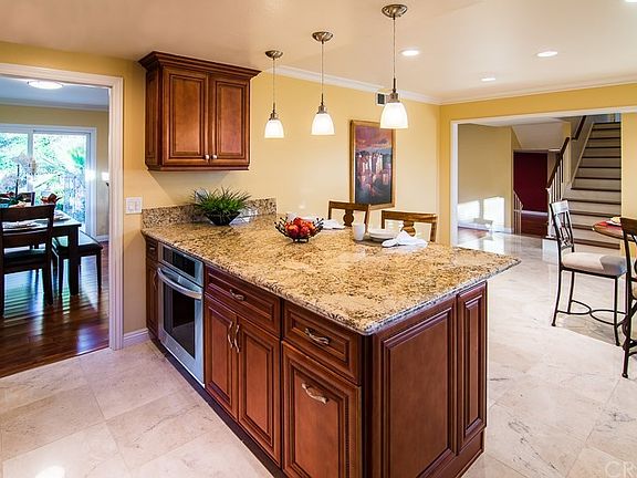 Gorgeous fully remodeled home located at the most desirable area in Rancho Palos Verdes with a peek-a-boo ocean view! Spacious kitchen has breakfast area for family gathering. The kitchen is remodeled with granite counter tops, wood cabins, self closing drawers, stainless steel appliances, and recess lights. 2 bedrooms on the lower level; Master suite and 2 bedrooms on top level. Master bedroom with walk in close, sitting area and access to balcony. All bathrooms are remodeled beautifully with new vanities with granite counter tops and frame-less shower doors. Large living room with fireplace. Family room has an access to backyard with sparking pool/slides, green area, fruit tress (Lemon, apple, fig and peach). Elegant marble floors from entry to kitchen and all bathrooms. Solid wood floors throughout in living room, dining room, family room , hallway, stairs and all bedrooms. All double pane windows. Newer interior doors. Newer air ducts in attic. The house is wired with Ethernet cable/coaxial cable/phone line. Smoke/carbon monoxide detectors are fully hard wired. Garage is completely updated: reinforced ceiling, attic storage with ladder access, a sink with granite counter top, utility cabinets, and roll up garage door. The energy efficient water heater with vapor sensor was installed little over one year ago.