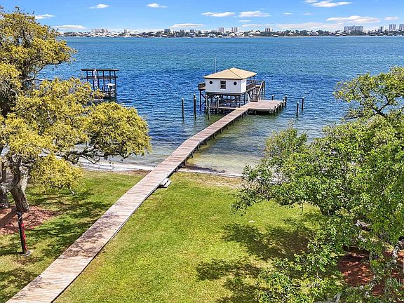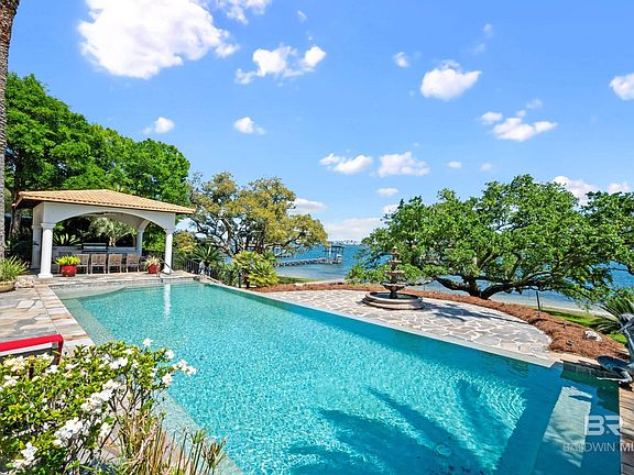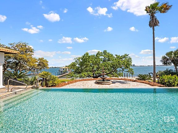 Experience unparalleled luxury and privacy with 136 feet of prime waterfront along Bayou St. John in the prestigious Orange Beach, Alabama. This remarkable estate stands alone in grandeur and design, welcoming you with a stately brick driveway lined by historic 1920s street lamps. The estate's lush landscaping and multiple garden areas amplify its Mediterranean allure. Spanning over 5,214 square feet of refined elegance, this home features over 4,000 square feet of expansive balconies across three levels, offering sweeping views and outdoor living. As you ascend the grand staircase, the entryway unfolds into an open, sophisticated layout where each detail is meticulously crafted—from the custom faux-painted finishes and bamboo flooring to the custom lighting perfect for art displays. The heart of this home is found on the second level, featuring the main living spaces with stunning views. The primary suite is a sanctuary of peace, equipped with a sitting area, fireplace, and a spa-like bathroom with ambient lighting, exquisite marble finishes, and a steam shower. The suite's walk-in closet is expertly fitted with custom storage solutions for ultimate organization. The third floor hosts two generously sized bedrooms, each with private bathrooms, and a large common area designed as a gallery space, ideal for art enthusiasts and hosting gatherings, offering a bird's eye view of the bay.The ground level serves as a versatile in-law suite or private guest space, complete with its own entrance, fully equipped kitchen, spacious dining and living areas, a laundry room, ample storage, and direct elevator access to the main level.Outside, the estate features quarry-stone decking, a saltwater pool with an infinity edge, a spillover spa, and a pool house with a full bath.Boating enthusiasts will love the deep water and access to Gulf of Mexico.This extraordinary property encapsulates the essence of luxury waterfront living, making it an unmatched retreat for discerning buyers.