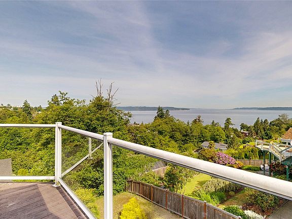 Rare find—offering panoramic Puget Sound views from nearly every room. Kitchen features solid oak upper cabinets, granite tile counters, tile floors, eating nook & a built-in pantry. Formal dining & an expansive family room w/fireplace & freestanding wood stove create a space ideal for entertaining. Primary suite boasts 3 closets & a en-suite bath w/heated floors, dual vanities, & a soaking tub. Second bedroom suite offers its own private entrance, a large open balcony, & direct access to a full bath w/heated floors & tiled tub/shower. Step onto the elegant deck to relax, dine, or simply soak in the view. Outdoor storage, deep 2-car garage, & a terraced yard complete this thoughtfully designed home—offering a lifestyle few others can match.